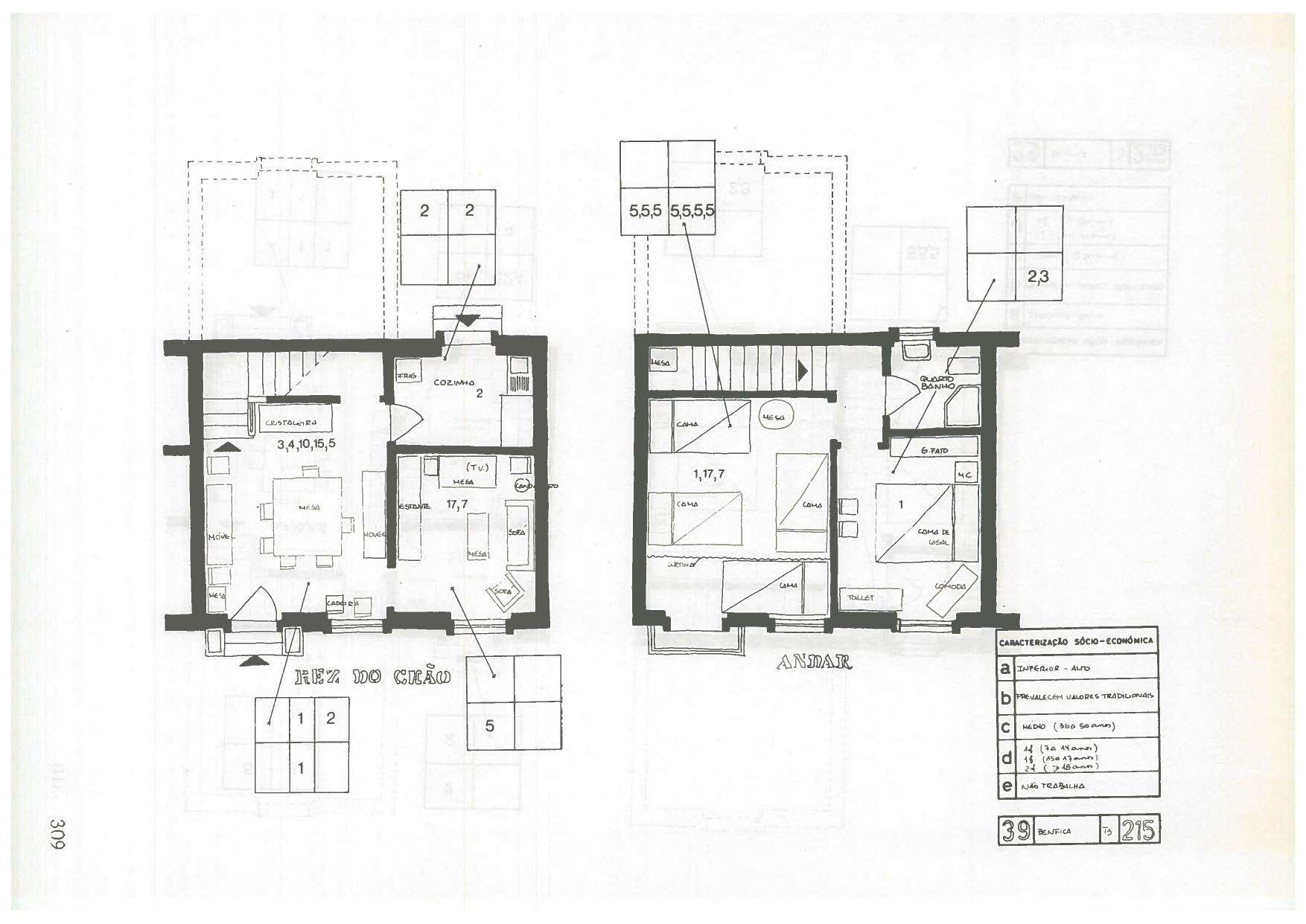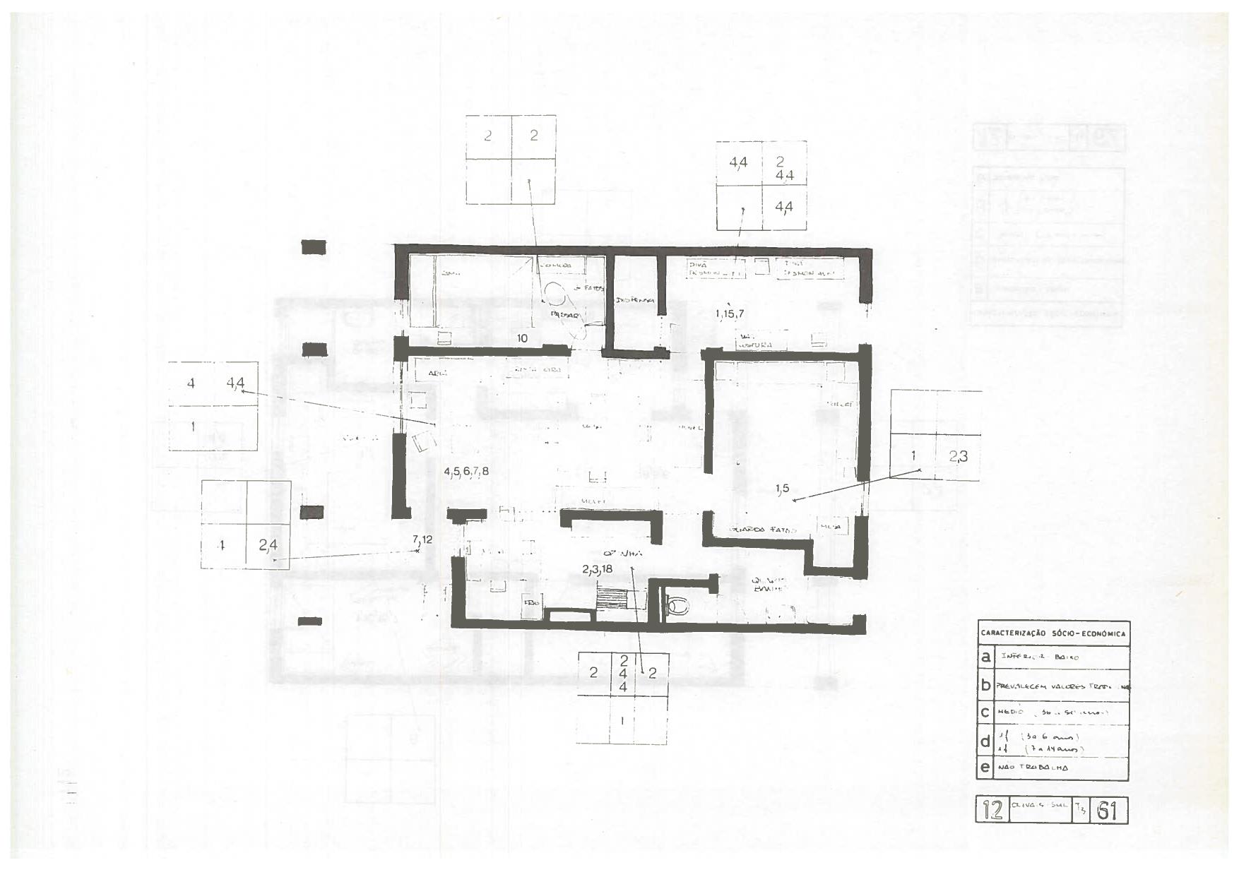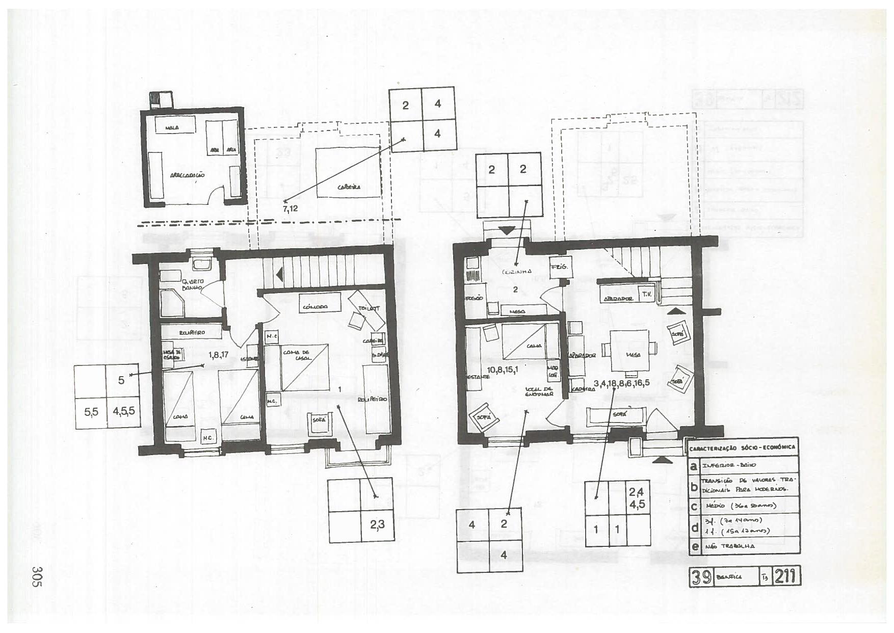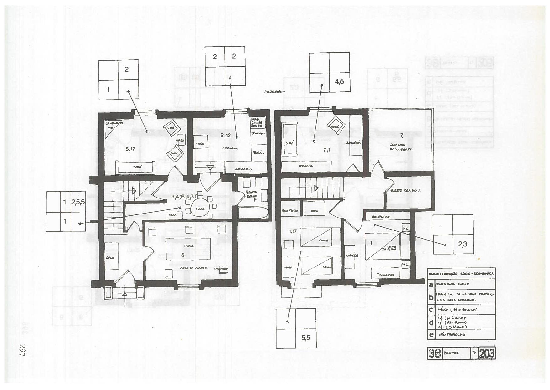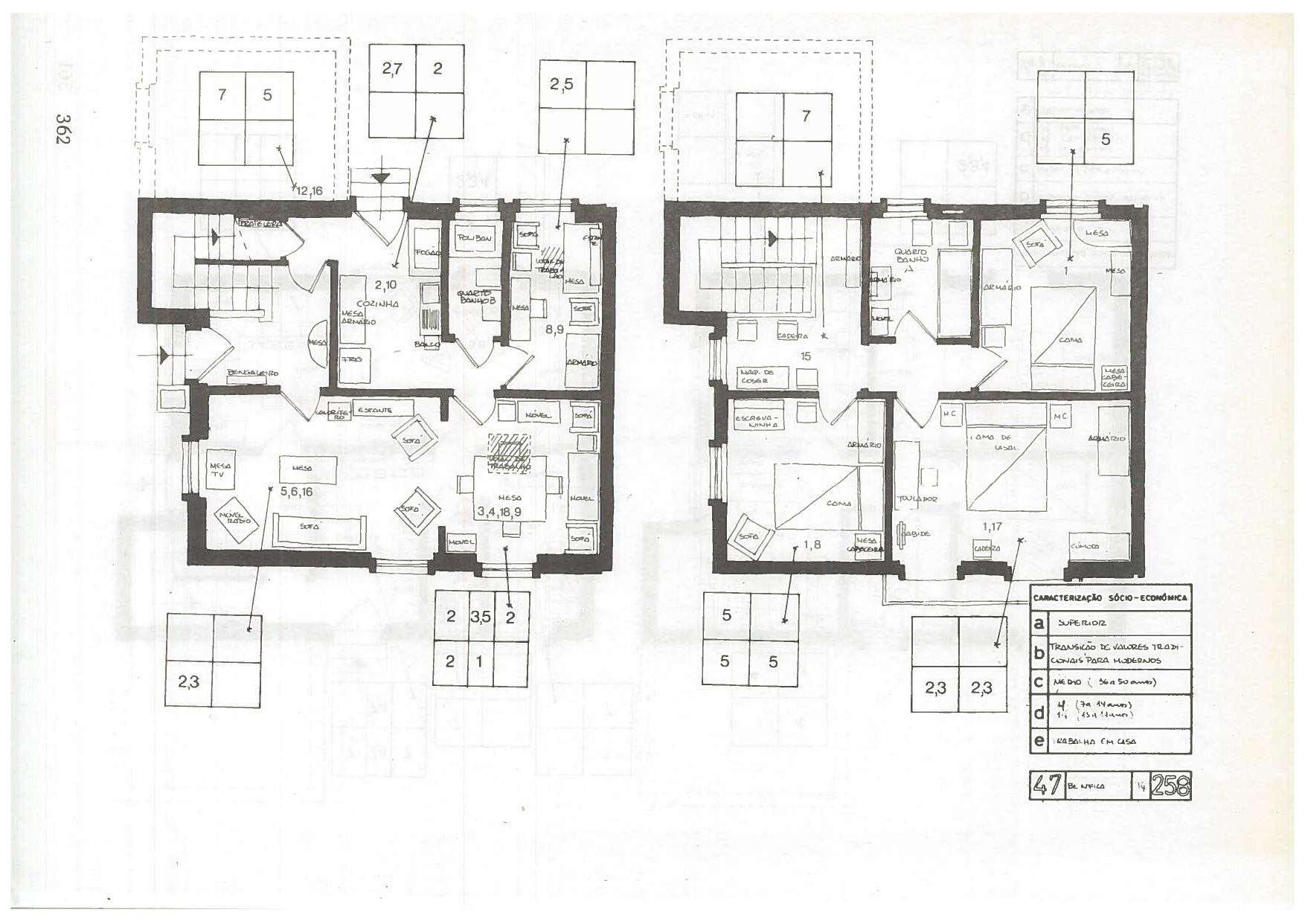 A series of interpretative and quantitative questionnaires were conducted on 300 families. For each family, a plan was published in the survey, providing information on where domestic activities take place, and where and when household members are usually located in the house. The interior space was divided into rooms labelled according to a general function, such as kitchen, living room and bedrooms. For each family, the arrangement and disposition of furniture were registered. In each labelled room, it was represented which domestic activities took place, and which family members were usually present at the different times of day (defined as morning, lunch time, afternoon, evening and night).