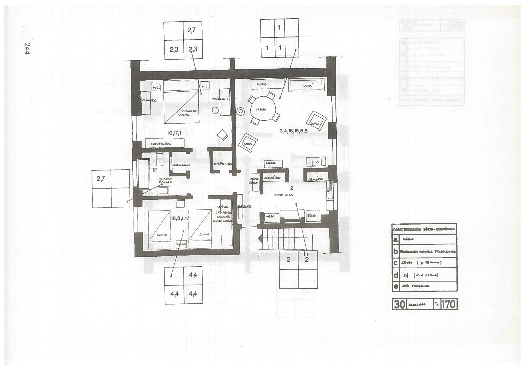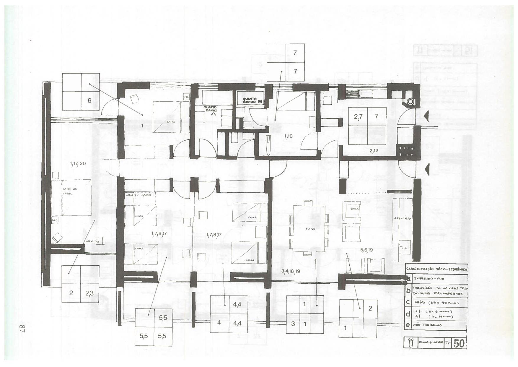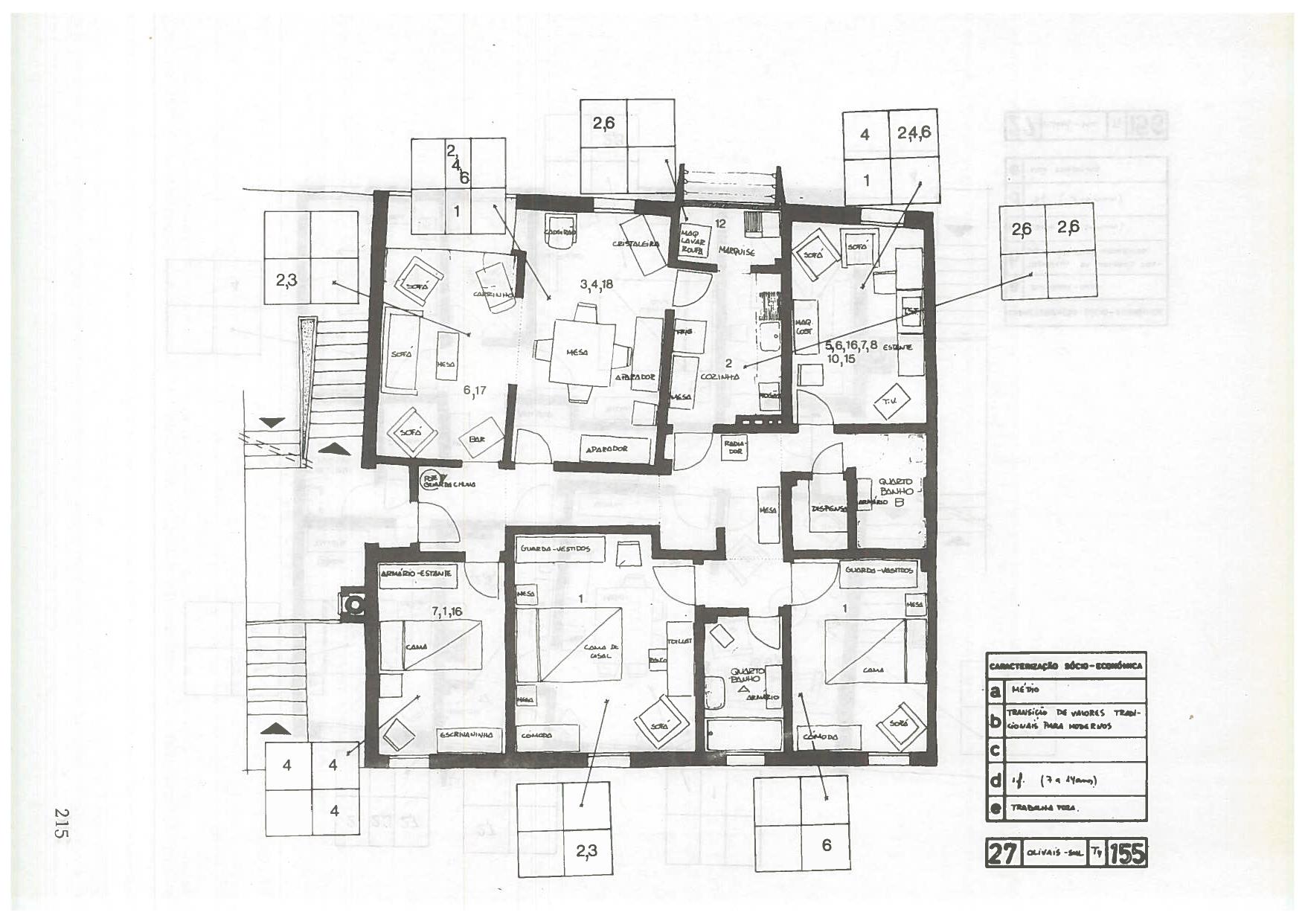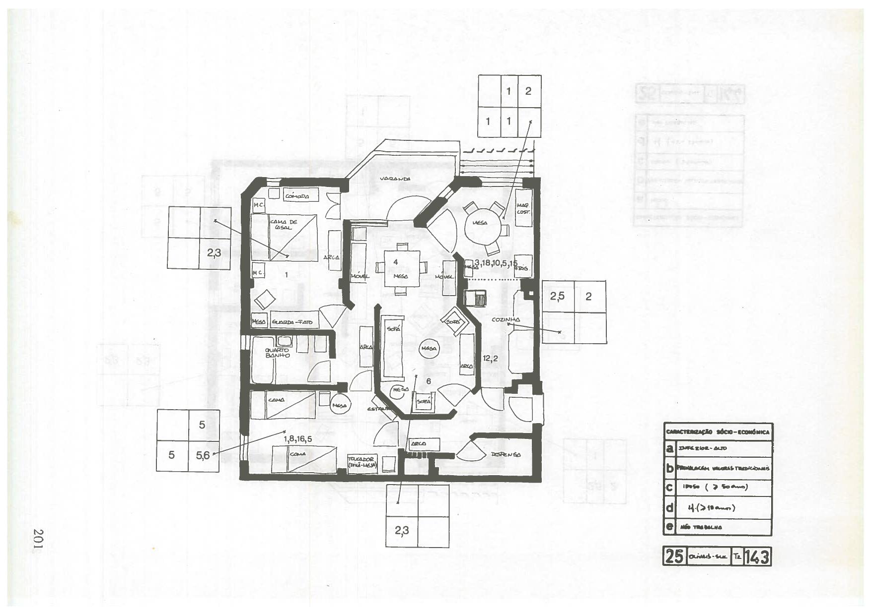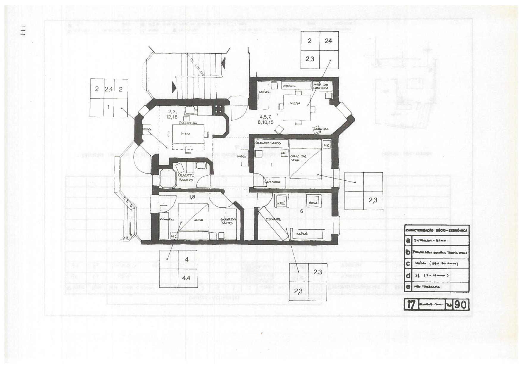 A series of interpretative and quantitative questionnaires were conducted on 300 families. For each family, a plan was published in the survey, providing information on where domestic activities take place, and where and when household members are usually located in the house. The interior space was divided into rooms labelled according to a general function, such as kitchen, living room and bedrooms. For each family, the arrangement and disposition of furniture were registered. In each labelled room, it was represented which domestic activities took place, and which family members were usually present at the different times of day (defined as morning, lunch time, afternoon, evening and night).